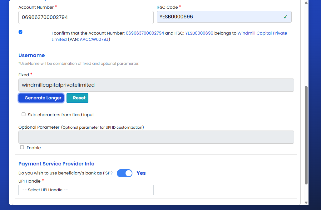 To complete this requirement, entities must register a @valid VPA (e.g., windmillcapital.ra@validyes).