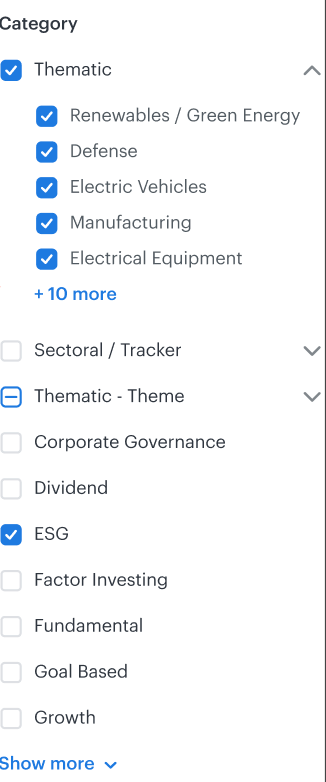The user will be able to filter smallcases by selecting the smallcase type and then further selecting the relevant strategy tags
