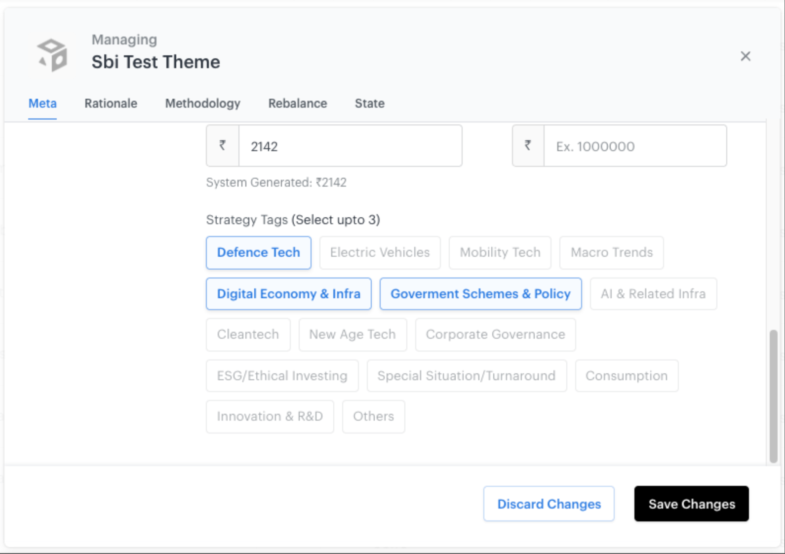 In the revamped framework, the universe of strategy tags depends on the smallcase type which has been selected by you. Thus, we are moving away from the universal tags to a more layered strategy tags approach.