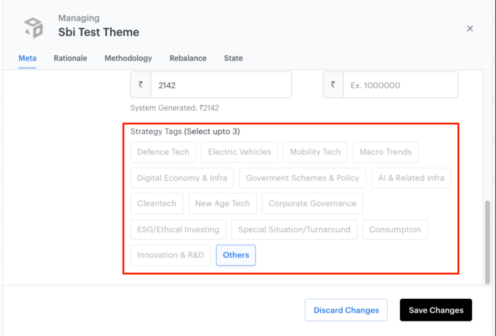 For existing smallcases, by default “Others” has been selected as the strategy tag. You are required to update the relevant Strategy Tags by going to My smallcases -> Manage -> Meta -> Strategy Tags